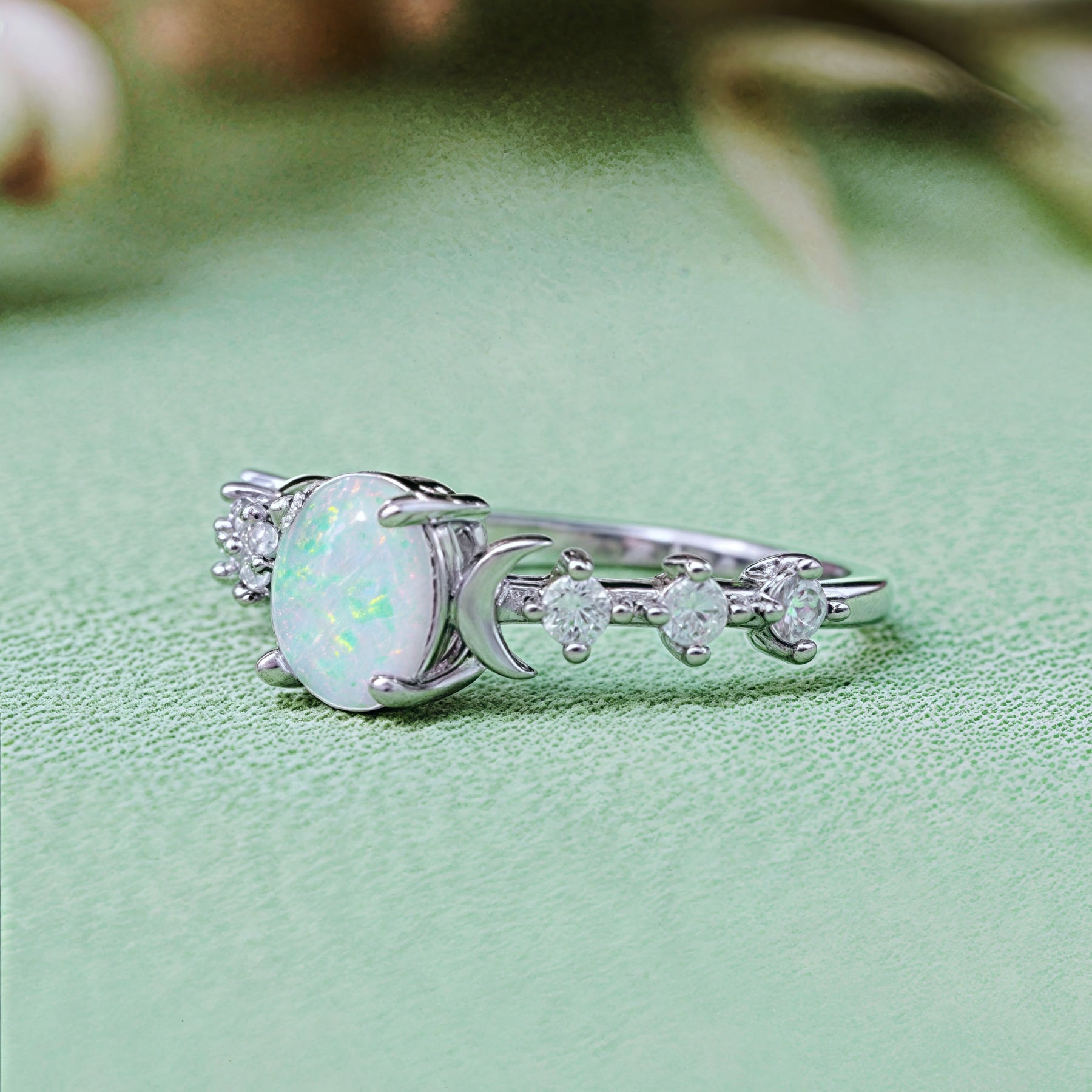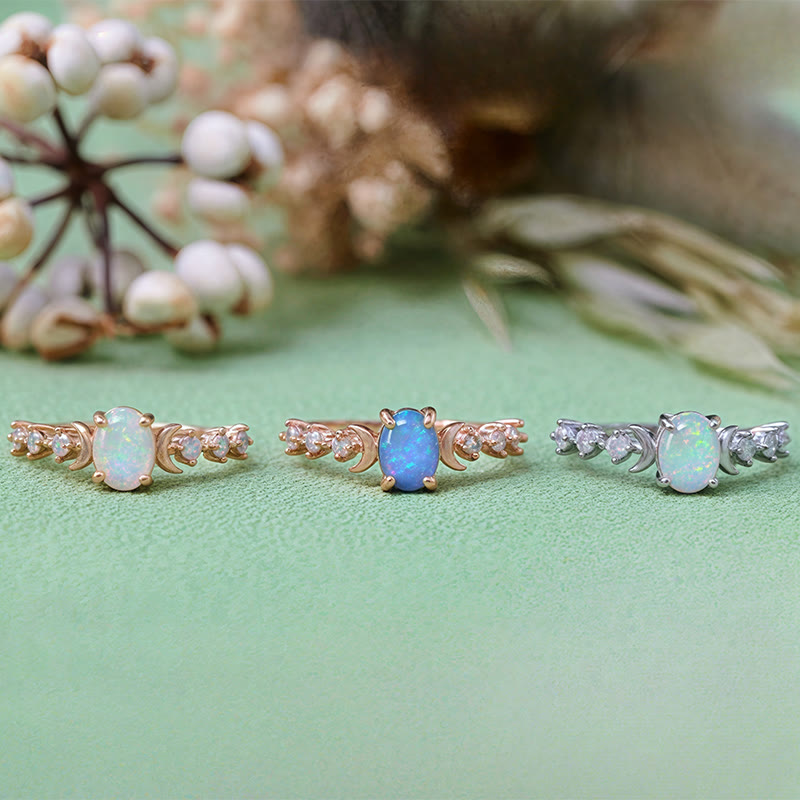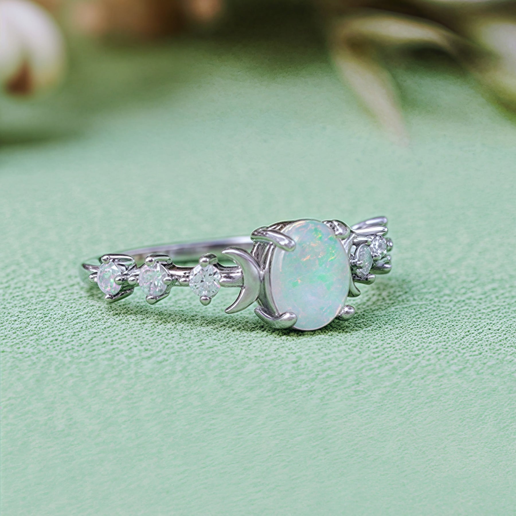 - Name: Olivenorma Natural Opal Double Moon Ring