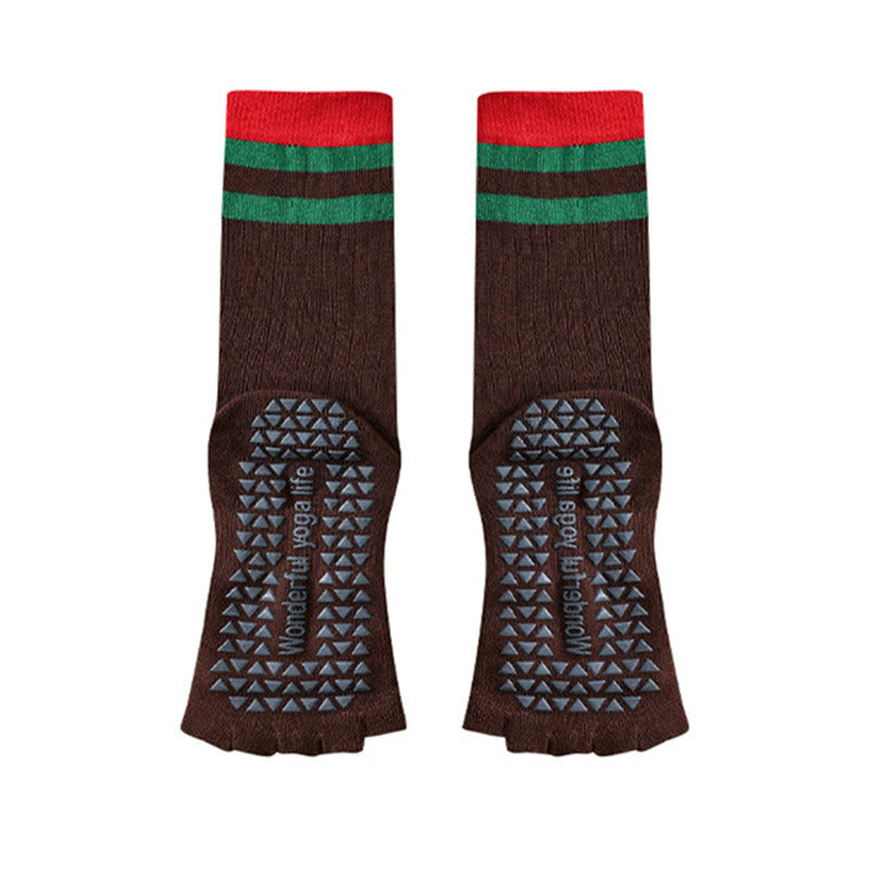 Olivenorma Mid-Calf Five-Toe Contrast Trim Anti-Slip Breathable Cotton Workout Women's Yoga Socks
