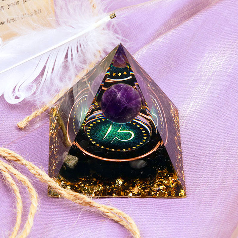 - Name: Olivenorma Amethyst Sphere With Obsidian Zodiac Libra Orgone Pyramid