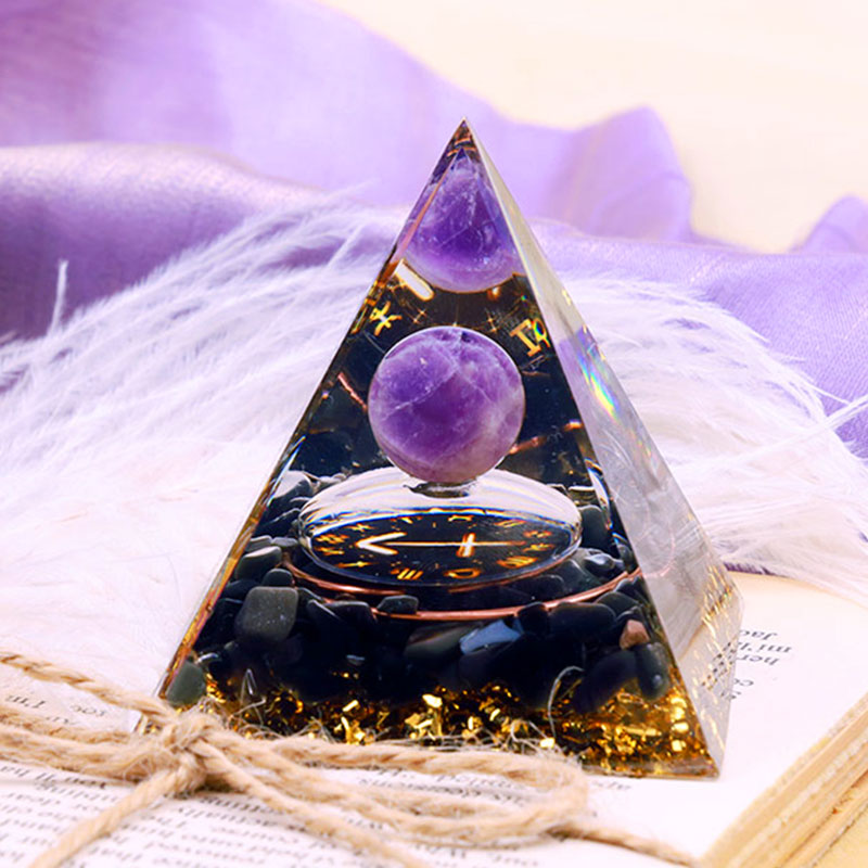 - Name: Olivenorma Amethyst Sphere With Obsidian Zodiac Sagittarius Orgone Pyramid
