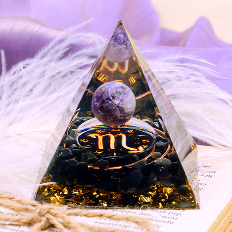 - Name: Olivenorma Amethyst Sphere With Obsidian Zodiac Scorpio Orgone Pyramid